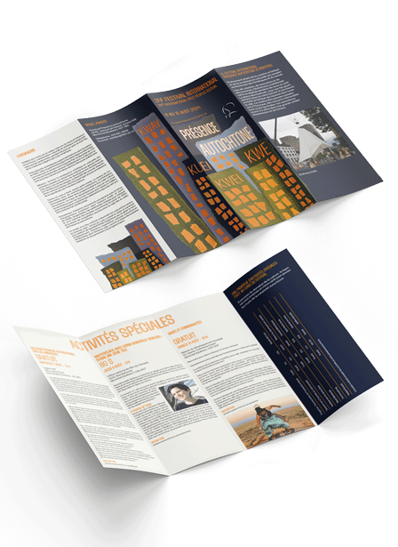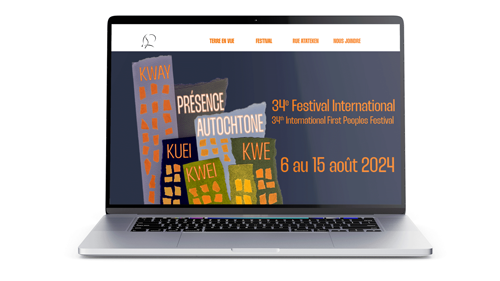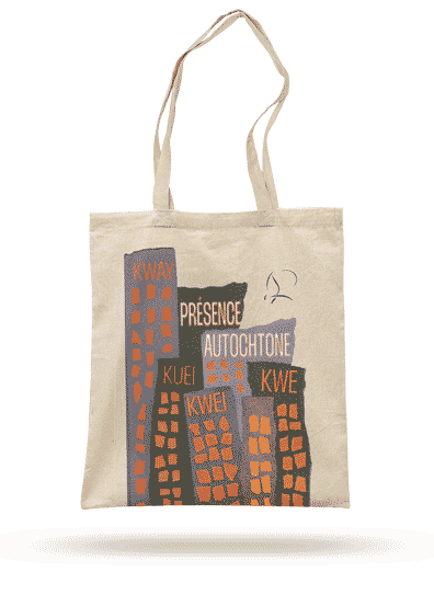 Dans le cours de projet publicitaire donné par Julie Royer, le mandat était de concevoir une affiche pour le Festival International Présence Autochtone. Le concept était de représenter la ville grâce aux immeubles, mais avec le mot bonjour écrit dans plusieurs langues autochtones pour monopoliser l’espace. L’ambiance de nuit avec les néons rappelle les festivités. Les immeubles sont des morceaux de cartons numérisés. La suite du projet était de décliner l’affiche pour en faire un dépliant, un site web, des publications Instagram et un objet promotionnel.